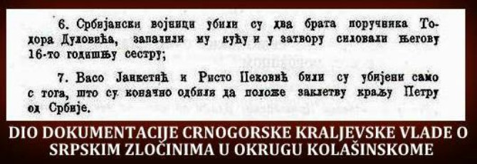 „Čast mi je izvestiti da mi načelnik Okruga kolašinskog [Boško Bošković] javlja da su se odmentici, koji se nalaze u Rovcima, aktivno digli na oružje i da su im se mnogi Rovčani pridružili. Traži hitnu pomoć.
