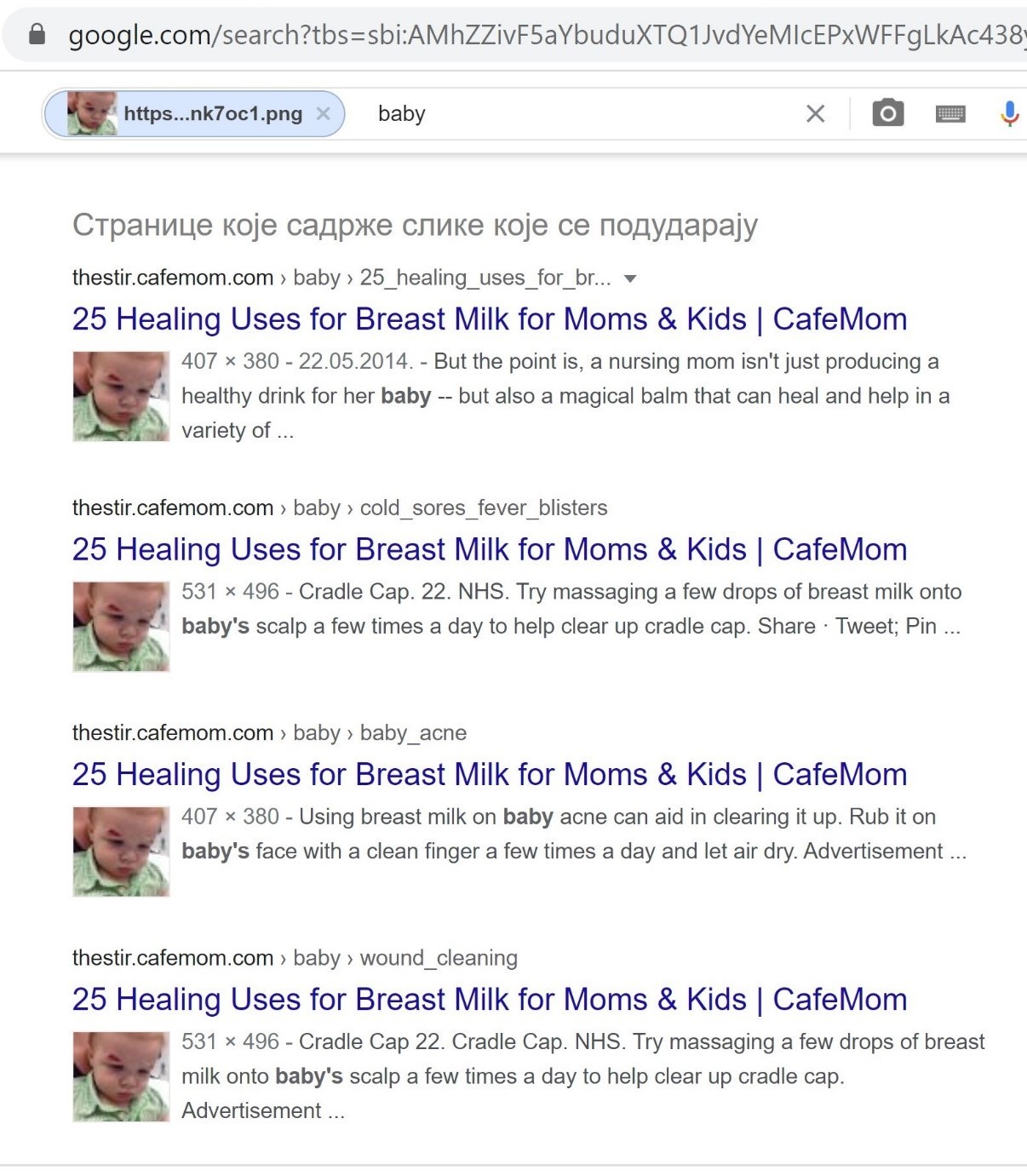 Ovako nešto uraditi je monstruozni čin.Išao sam na ovajsajt i vidijo istovjetnu sliku ovoga djeteta a objavljena je da bi se objasnilo mladoj majki kako može da upotrjebi majčino mlijeko ako nema drugog dezifekcion srestva a u slučaju da se dijete lakše povrijdi .Jako bijedno od Medojevića