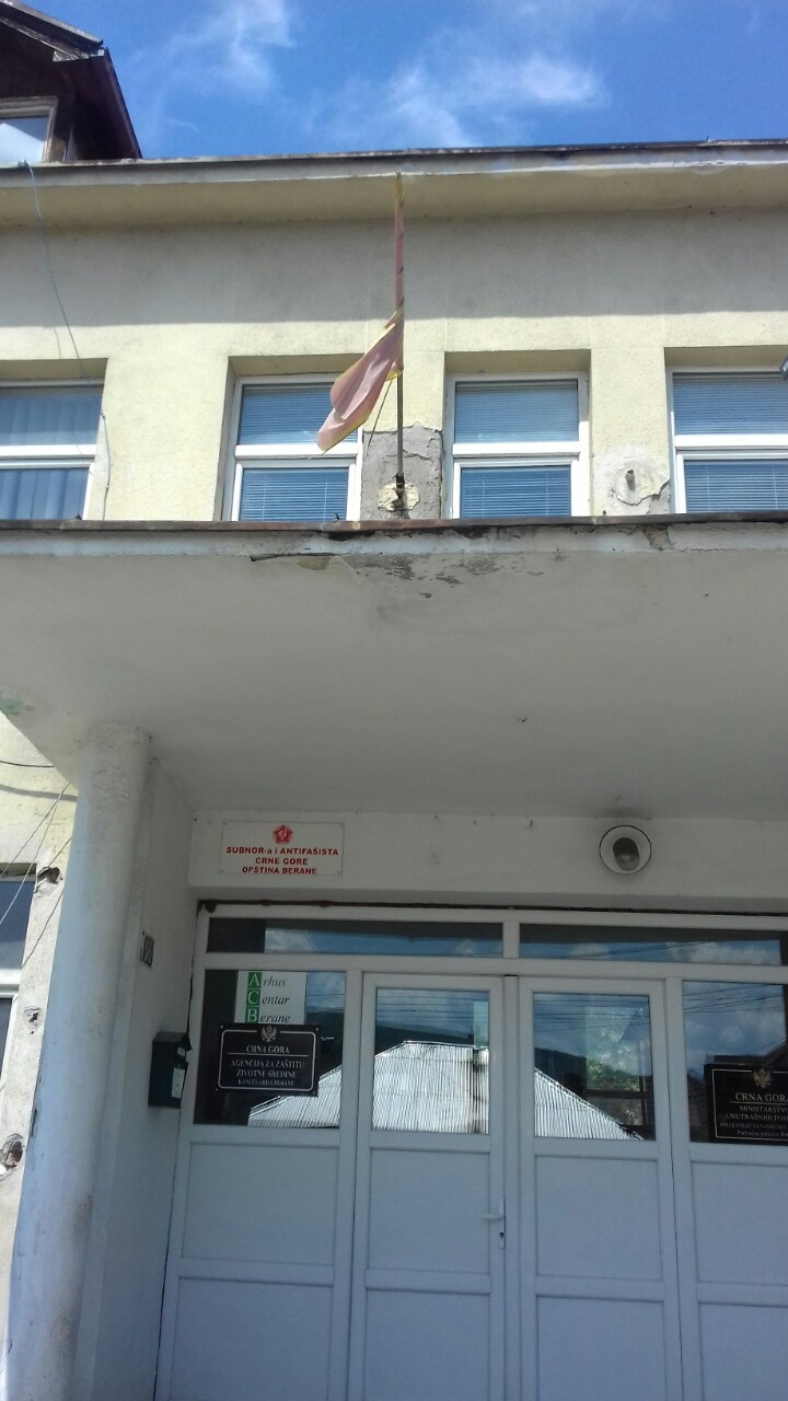 Čitaoci nam šalju fotografije na kojima se vidi da je državna zastava, istaknuta na zgradi u kojoj se nalaze kancelarije Direktorata za vanredne situacije MUP-a, Agencije za zaštitu životne sredine i SUBNOR-a u Beranama, skoro uništena.