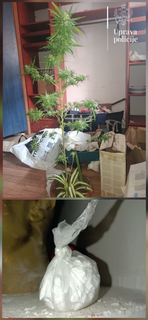 Takođe, u kući je pronađena i oduzeta stabljika zelene boje nalik na marihuanu, dodaju iz policije.