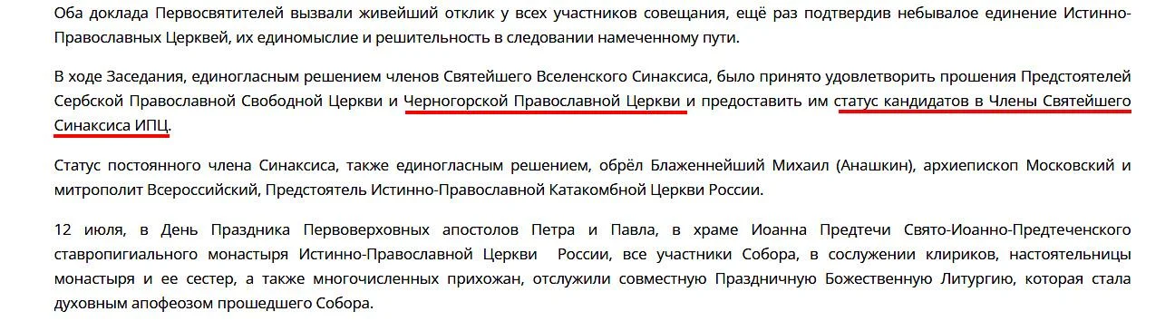 A iz Rješenja predsaborske konferencije predstojateljâ Istino-pravoslavne crkve, od 11. jula 2022, akta koji je nepobitno objavljen u Rusiji, proizilazi: