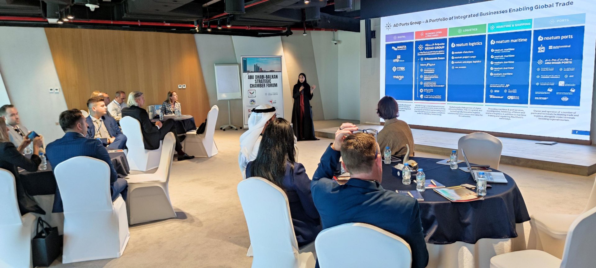 Na okruglom stolu koji je organizovala Privredna komora Abu Dhabija, učestvovali su HE. Ali Mohamed Al Marzooqi, Generalni direktor privredne komore Abu Dhabija, Haba Al Ali iz Investicione agencije Abu Dhabija (ADIO), Khaleefa Ali Al Hasani iz Razvojne banke Ujedinjenih arapskih Emirata kao i Valentina Marku, predsjednica Albanskog poslovnog savjeta u Abu Dhabiju.