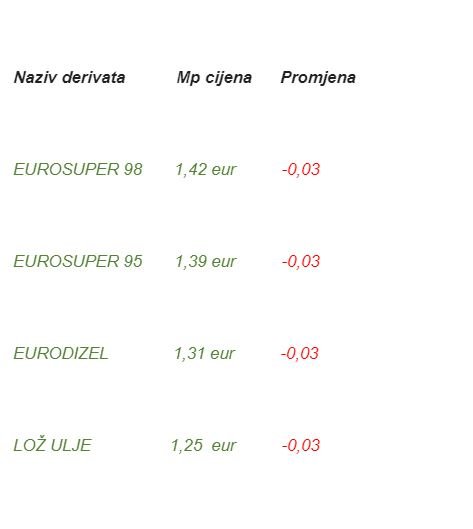 Cijene svih vrsta goriva će od sjutra, 21.10.2025. godine, pojeftiniti tri centa.