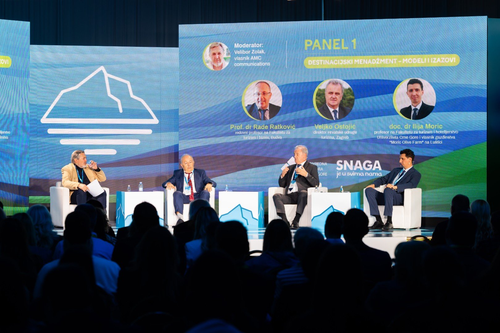 Velibor Zolak, vlasnik AMC Communications, moderirao je panel o modelima upravljanja destinacijom, a sagovornici su bili Rade Ratković sa Fakulteta za turizam i biznis u Budvi, Veljko Ostojić, direktor Hrvatske udruge turizma, te Ilija Moric sa Fakulteta za turizam i hotelijerstvo Univerziteta Crne Gore i vlasnik gazdinstva „Moric Olive Farm“ na Luštici.
