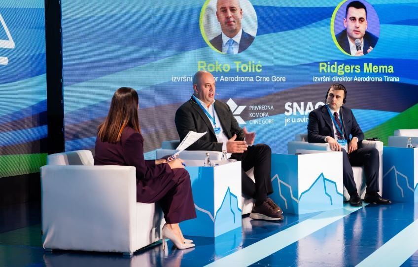 Tematski dio konferencije otvorio je razgovor o važnosti avio dostupnosti, koji je novinarka Aleksandra Mudreša vodila sa Rokom Tolićem, izvršnim direktorom Aerodroma Crne Gore i Ridgersom Memom, izvršnim direktorom aerodroma Tirana.