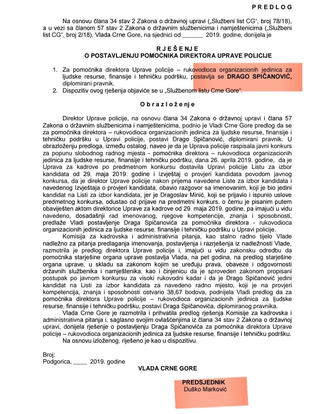 - Dok on danas priča o “krizi bezbjednosnog sektora”, isti taj Marković je 2019. lično potpisao rješenje o imenovanju Draga Spičanovića za pomoćnika direktora Uprave policije i to je dokument koji danas pokušava da zaboravi. Taj papir postoji. Njegov potpis postoji. I to je samo jedan u nizu njegovih kadrova koji su u međuvremenu pohapšeni zbog optužbi da su izvršili najteža krivična djela, navode Demokrate.