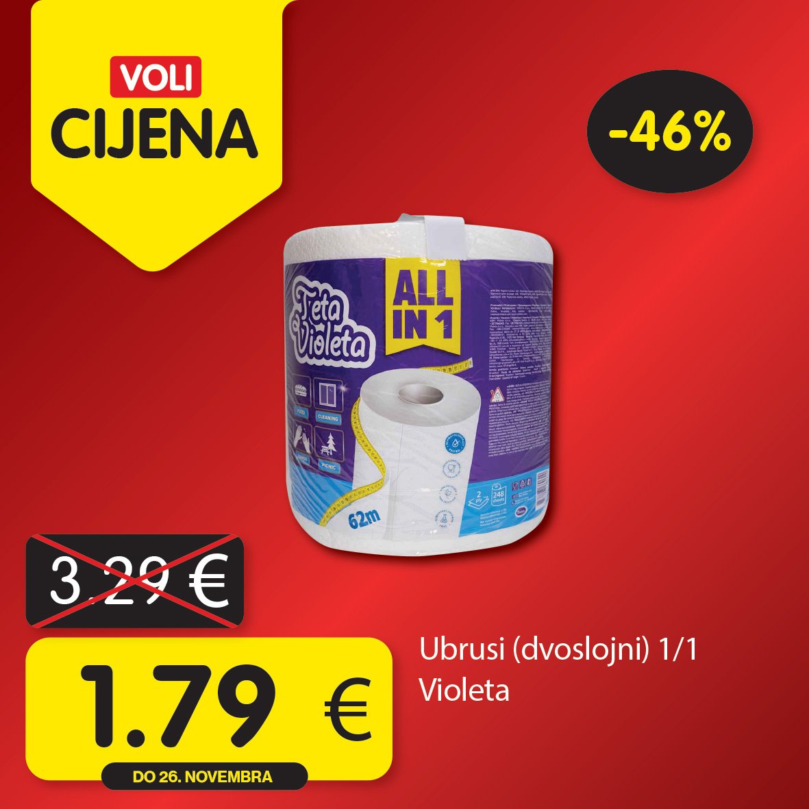Atraktivni proizvodi uz najpovoljnije cijene na tržištu, dostupni u svim Voli i Naš diskont marketima.