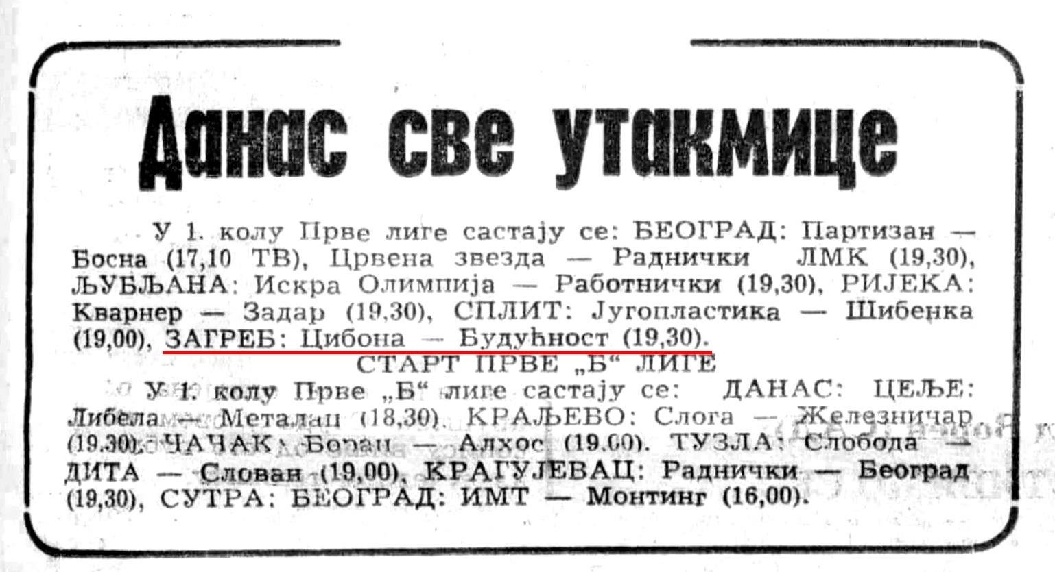 Košarkaši Budućnosti su protiv Cibone — koja je uz Partizan bila favorit za titulu prvaka — prema D. Jeraseku, hrvatskom novinskom izvještaču s ove utakmice, krenuli silovito, „povevši sa 10:2”.