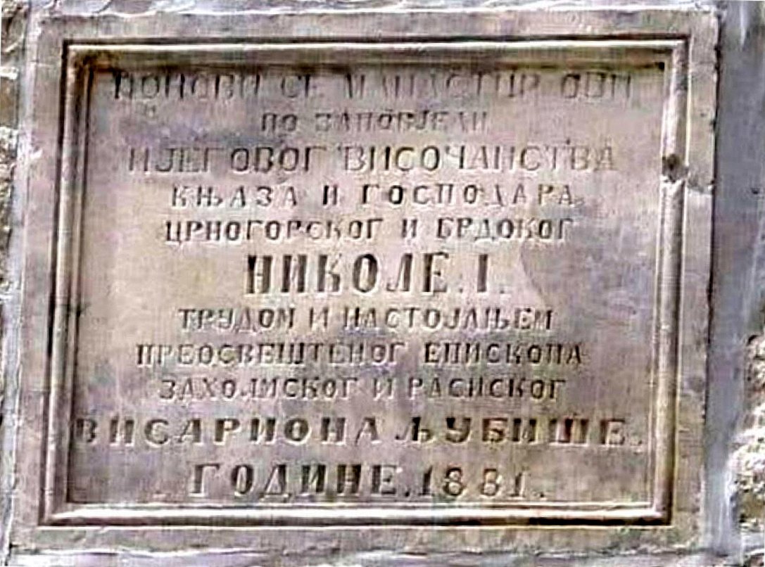 Tabla s gornjim natpisom se nalazi uzidana u ostroškom Donjem Manastiru.