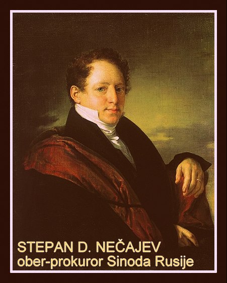 Nečajev je istoričar, književnik, arheolog, „aktivni tajni savjetnik”, što je visoki čin u Ruskoj carevini – po rangu identičan generalu ili admiralu. Njegoš mu u zbirci „Пустиняк цетински” (1834) posvećuje pjesmu, naslovljenu„Stepanu Dmitijeviću Nečaevu. Ober-Prokuroru Svjatjejšago Sinoda”. Tu ga naziva: „Tvrdi stupe Crkve prađedovske”.