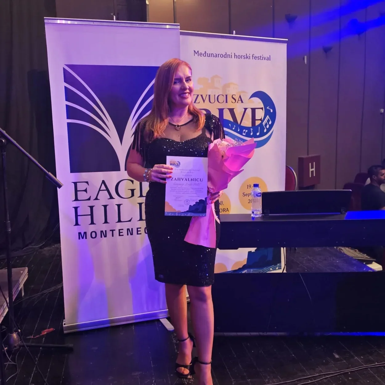 Direktorica komunikacija, marketinga i institucionalne saradnje u “Eagle Hillsu Montenegro“, Ana Martinović, je nakon uručenja zahvalnice izrazila zadovoljstvo što je ova kompanija podržala 1. Međunarodni festival horova u Ulcinju.