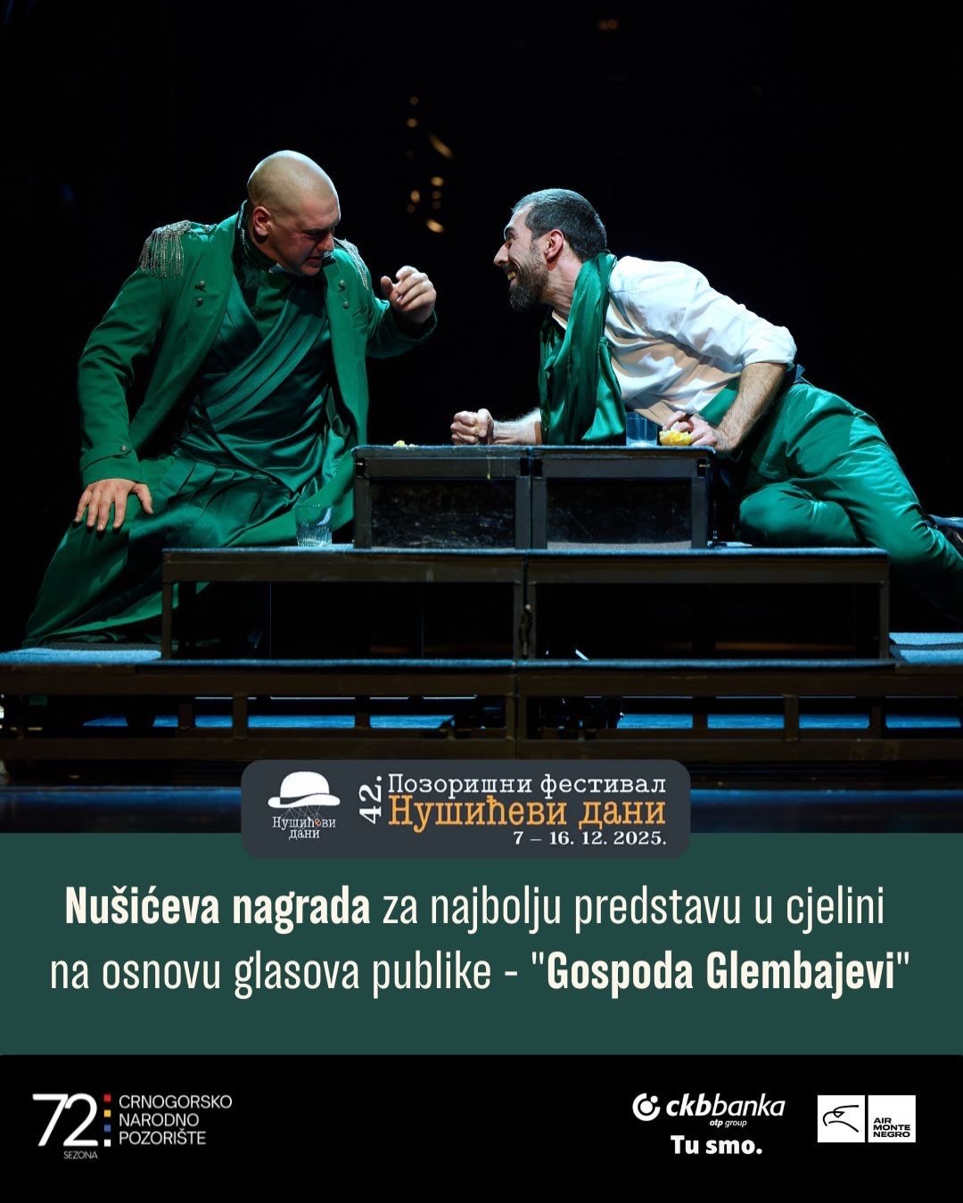 Nušićeva nagrada za najbolju predstavu u cjelini, na osnovu glasova publike, takođe je dodijeljena našoj predstavi “Gospoda Glembajevi”.
