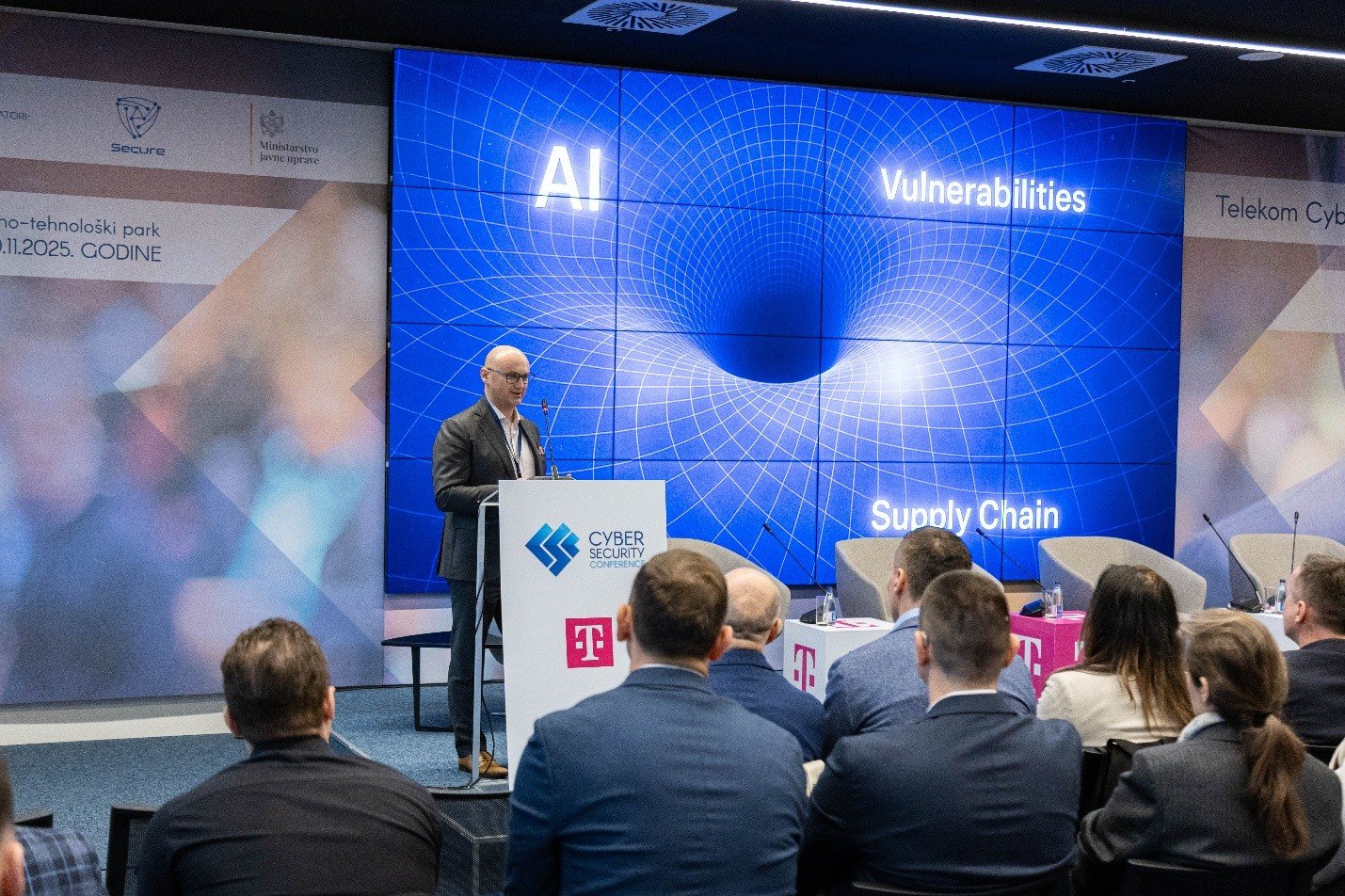 Posebna pažnja posvećena je mogućnostima primjene vještačke inteligencije u otkrivanju i smanjivanju rizika, naprednim modelima detekcije prijetnji i automatizovanim procesima u okviru bezbjednosnih operativnih centara, uz izazove koje AI predstavlja u dijelu kibernetičke sigurnosti. Upravo ova tema - kroz eksplikaciju koncepta sajber singulariteta i uticaja vještačke inteligencije na evoluciju bezbjednosnih prijetnji, bila je u fokusu predavanja međunarodnog stručnjaka za digitalnu bezbjednost Rafała Jaczyńskog - jednog od najuticajnijih evropskih eksperata u oblasti cyber zaštite.