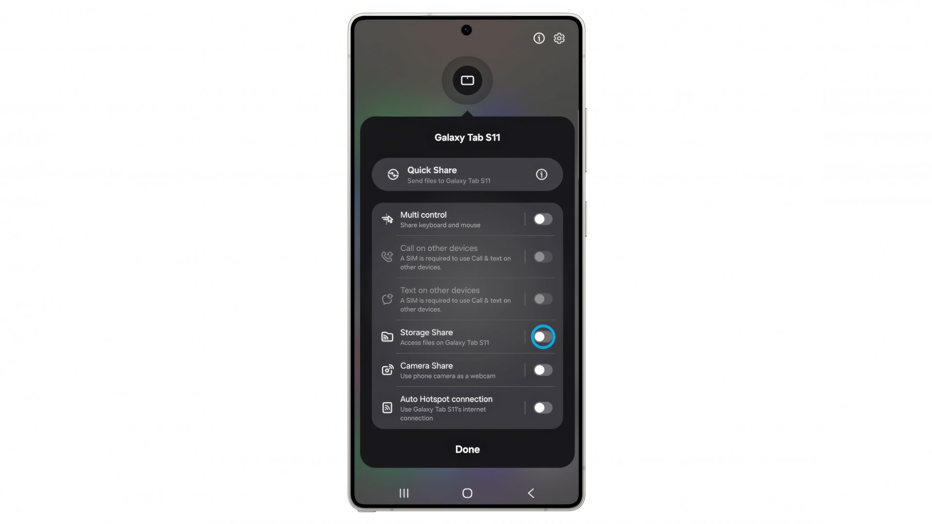 Funkcija Storage Share[4] donosi još tečnije korišćenje uređaja u Galaxy ekosistemu jer prikazuje dokumente sa drugih Galaxy uređaja – uključujući tablete i stone računare – direktno na aplikaciji My File.