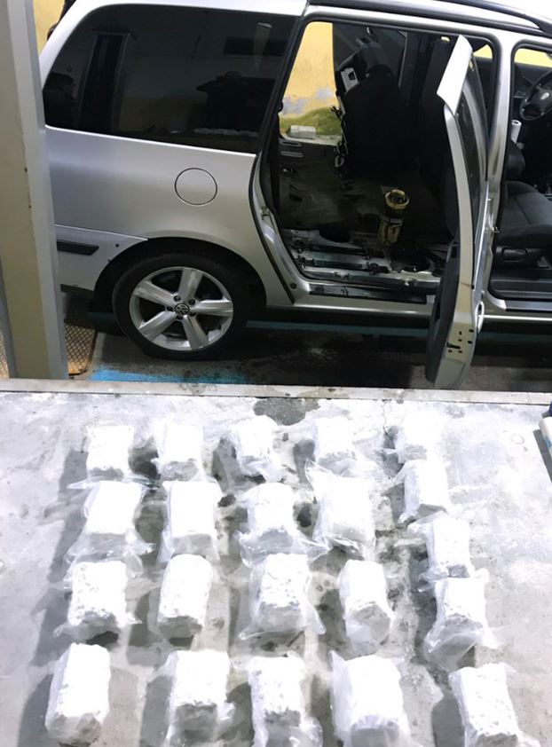 "Naime, policijski službenici OGB Ulcinj i carinski službenici CI Sukobin su u saradnji sa graničnom policijom Republike Albanije, 04. marta 2019. godine, na Zajedničkom graničnom prelazu Sukobin – Murićani, kontrolom vozila marke „VW Sharan“ kojim je upravljao I.Đ. (31) iz Republike Albanije dok se u vozilu nalazio E.N. (23) iz Republike Albanije, u specijalno napravljenom bunkeru u rezervoaru vozila pronašli i oduzeli 22 pvc pakovanja sa sadržajem biljne materije tamnozelene boje za koju se sumnja da je opojna droga marihuna tipa skank, ukupne težine oko šest kilograma. Prilikom kontrole korišćeni su službeni policijski psi za detekciju narkotika", navedeno je u saopštenju.