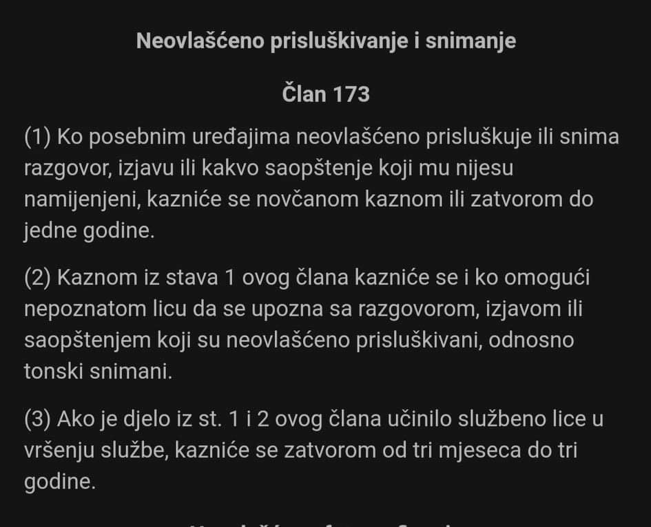 Svi zajedno sa njihovim nesrećnikom koji je tajno i nedozvoljeno izvršio prisluškivanje i snimanje izvršili su navedeno krivično djelo.