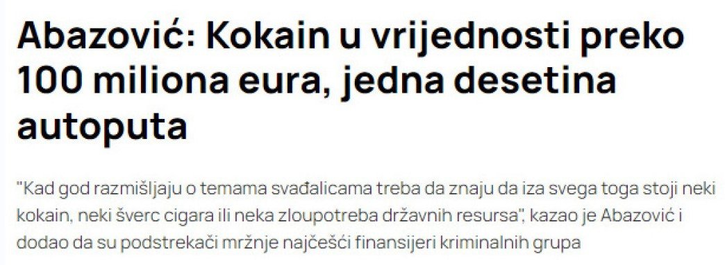Abazović je sljedbenike dopingovao s informacijom o zaplijeni, ispostaviće se, 1.206 kg kokaina u Zeti: