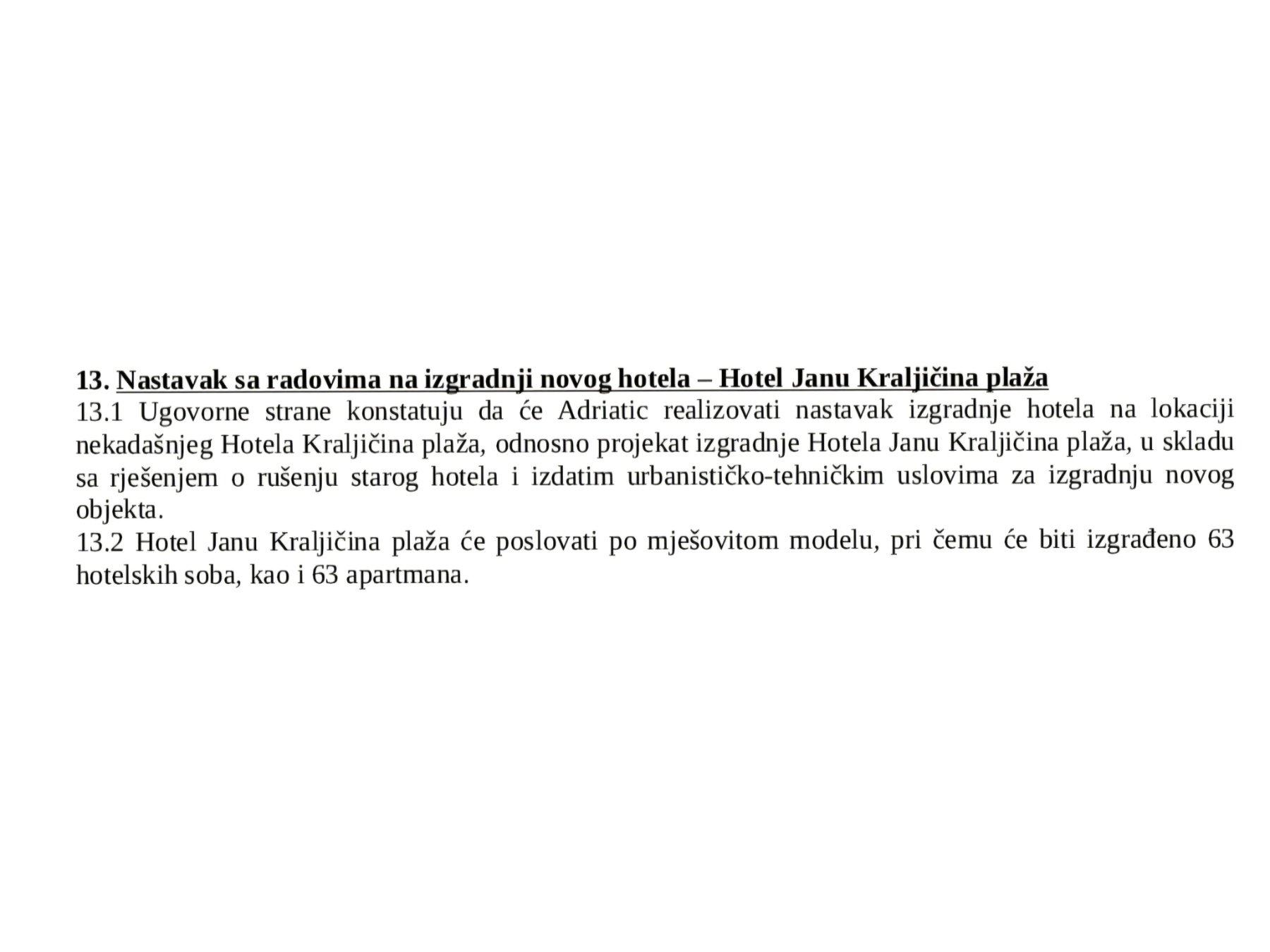 Abazović je prenio da su Vlada Crne Gore, više državnih preduzeća i Adriatic Properties potpisali ugovor te da činjenica da to nije zvanično objavljeno ukazuje na određene spletke.