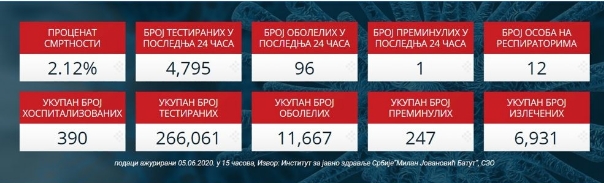 U posljednja 24 časa u Srbiji je preminula još jedna osoba od posljedica koronavirusa, a ukupan broj žrtava od početka epidemije je 248.