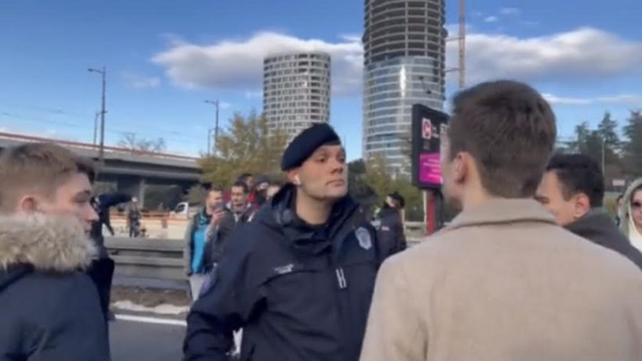 Kasnije se pojavio i drugi snimak. Naime, na putu kod Sava centra, koji je bio blokiran tokom današnjeg protesta, Krstić je jednu djevojku fizički odvukao sa puta i bacio preko bankine.